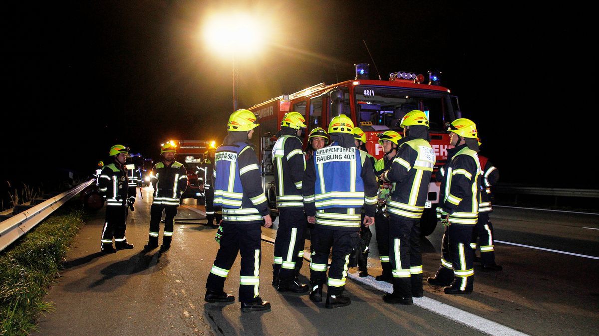 22/65 VU Lkw/Pkw auf der A8 am 18.10.2022: der dritte Einsatz wurde alarmiert um 19.55 Uhr. Mit den Feuerwehren Raubling, Aising, Happing und Rosenheim mussten wir auf die A8 km 54 -> München. Dort war ein Pkw unter einen Auflieger gefahren. Der Fahrer konnte glücklicherweise eigenständig aus dem Pkw steigen und wurde dann von Ersthelfern und dem Rettungsdienst versorgt. Wir unterstützten den Einsatz in dem unser VSA die Einsatzstelle absicherte bis zur Ablösung durch die Autobahnmeisterei und zum anderen leuchteten wir den Hubschrauber Ladeplatz aus.