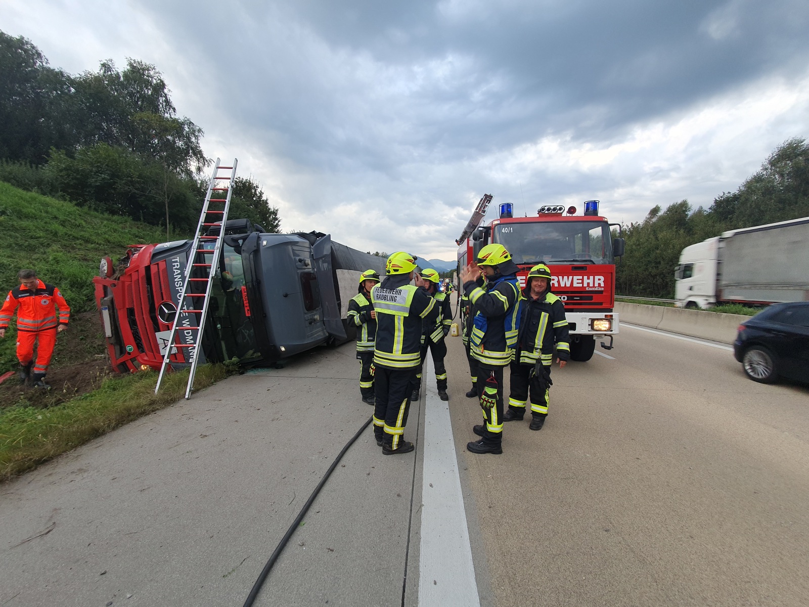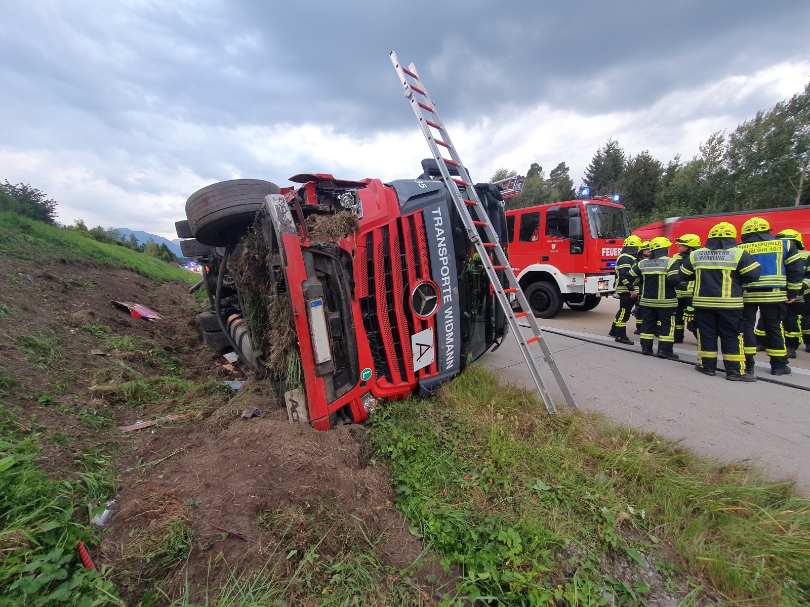 Mit der Feuerwehr Raubling wurden wir um 7.25 Uhr auf die A 93 -> Inntaldreieck km 2 alarmiert. HIer war ein Lkw nach rechts von der Fahrbahn abgekommen, schräg entlang einer Böschung gefahren und dann auf die Fahreseite umgestürzt. Die Fahrerin war hierbei nur eingeschlossen und leicht verletzt worden. Wir sicherten die Erstmaßnahmen mit dem VSA ab und wurden dann durch die AM rausgelöst.